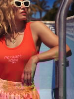 Camiseta entalladita de canalé con bordado central "Me Calaste Hondo" color rojo anaranjado