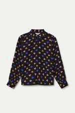 Camisa de tejido viscoso ligero con estampado Potpourri. Cuello solapa y manga larga terminada en botón. Cierre frontal con botones. La modelo mide 177 cm y lleva la talla S.
