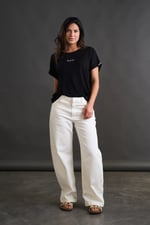 -Camiseta de corte recto y oversize, de marga corta y cuello redondo.