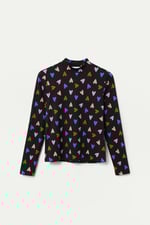 Camiseta tejido estampado Potpourri. Cuello mock y manga larga. Hombro ligeramente caído. La modelo mide 177 cm y lleva la talla S.