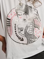 Camiseta blanca sin mangas con estampado foil plata, es Ampliota 100% Algodón de primera calidad muy suavecito.