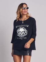 Jersey negro con felpita fina en el interior muy gustosa y agradable, serigrafía blanca y una plata muy especial! tiene manguita 3/4 y cuello abierto!