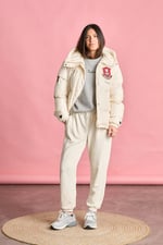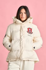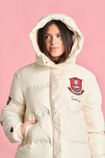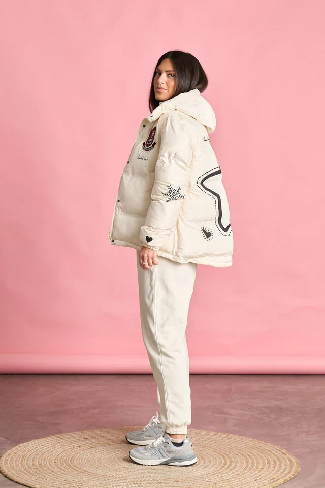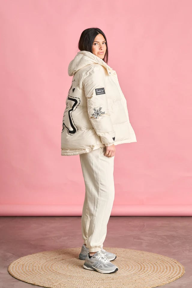 -Plumífero corto, de corte evasé y largos desiguales, de EDICIÓN LIMITADA.