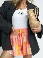 Cada short es único, porque el estampado al ser de un cuadro muy grande no siempre coincide en el mismo sitio! Así que cada prenda es One of a kind como se suele decir… único y especial!!!