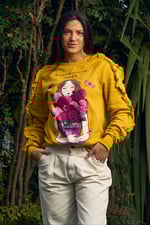 -Maxi print delantero con detalle de strass de piedras sobre la ilustración.
