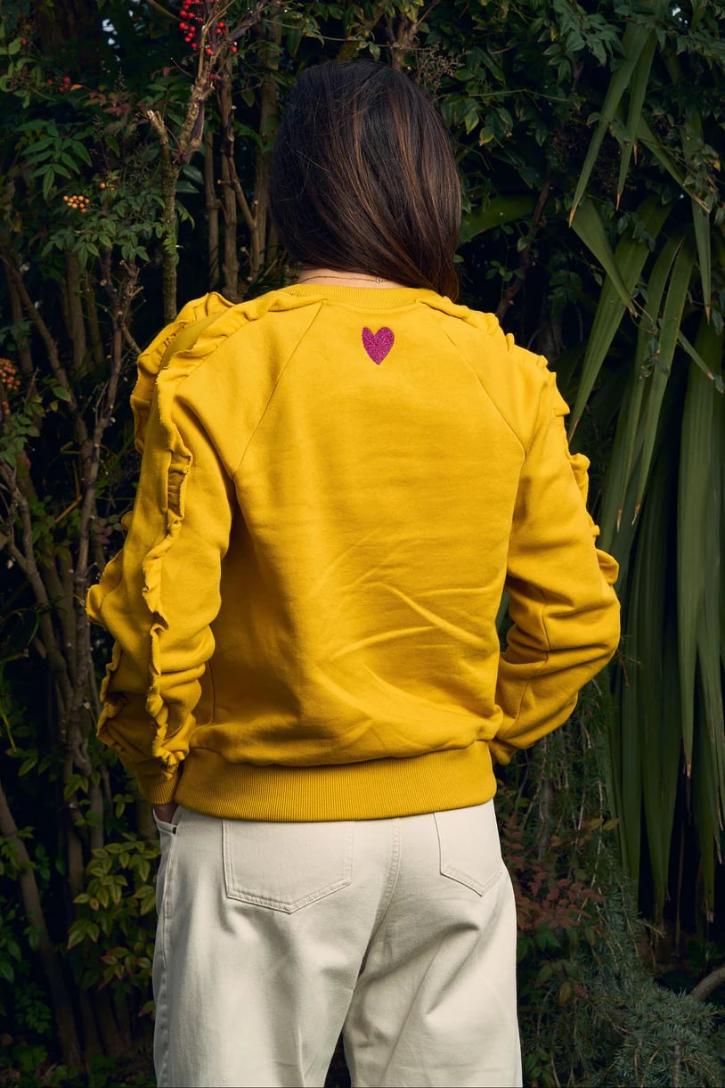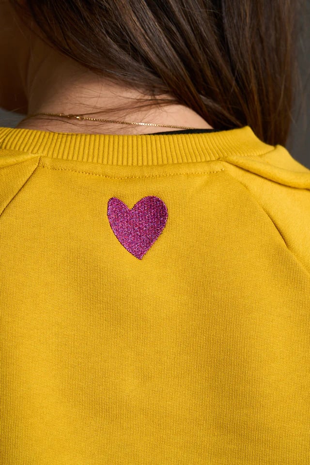-Detalle de corazón bordado en hilo lurex en la parte trasera.