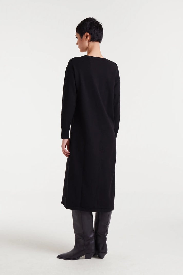 Vestido midi jacquard con estampado Super Green Heart. Con cuello redondo y manga larga. Hombro ligeramente caído. Detalles en rib. La modelo mide 177 cm y lleva la talla S.
